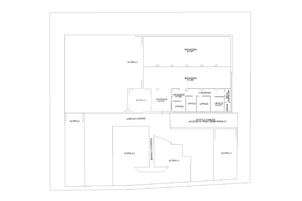 Il secondo magazzino è stato oggetto di recente ristrutturazione totale e installazione di nuovi serramenti. Si divide in zona reception e n. 4 ambienti ad uso ufficio totalmente controsoffittati e climatizzati con impianto autonomo.