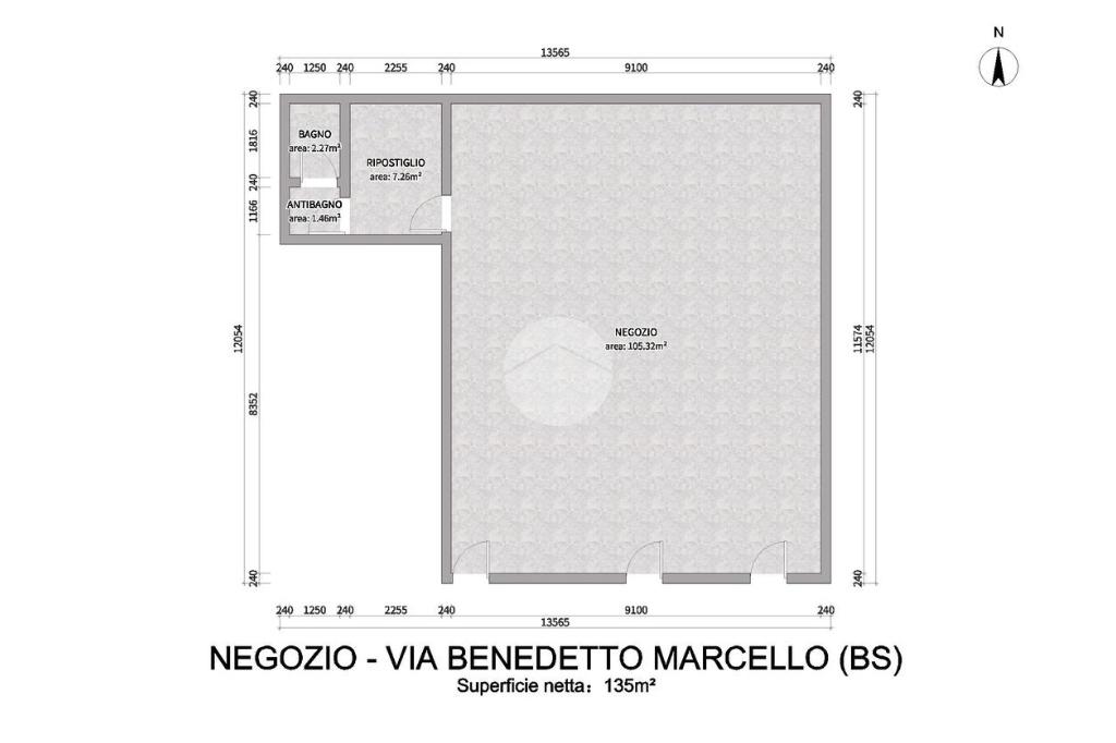 SUPERFICIE: il negozio ha una superficie complessiva di 135mq open space con n. 3 accessi e un piccolo spazio ad uso ripostiglio.
