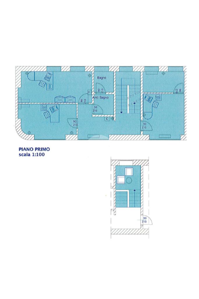 SUPERFICIE: l’ufficio ha una superficie complessiva di 110 mq, è diviso in n. 4 ambienti e si sviluppa su due livelli.