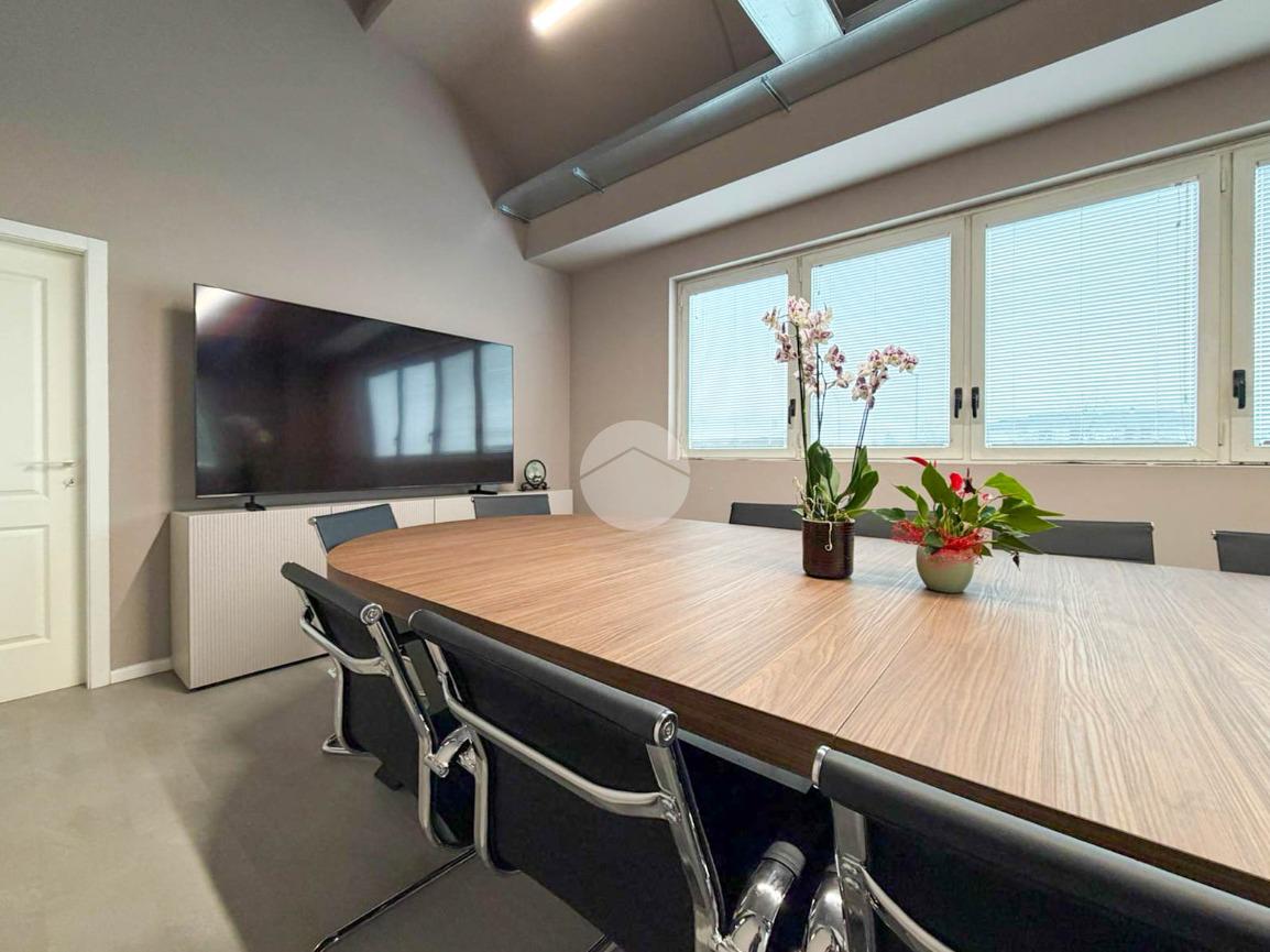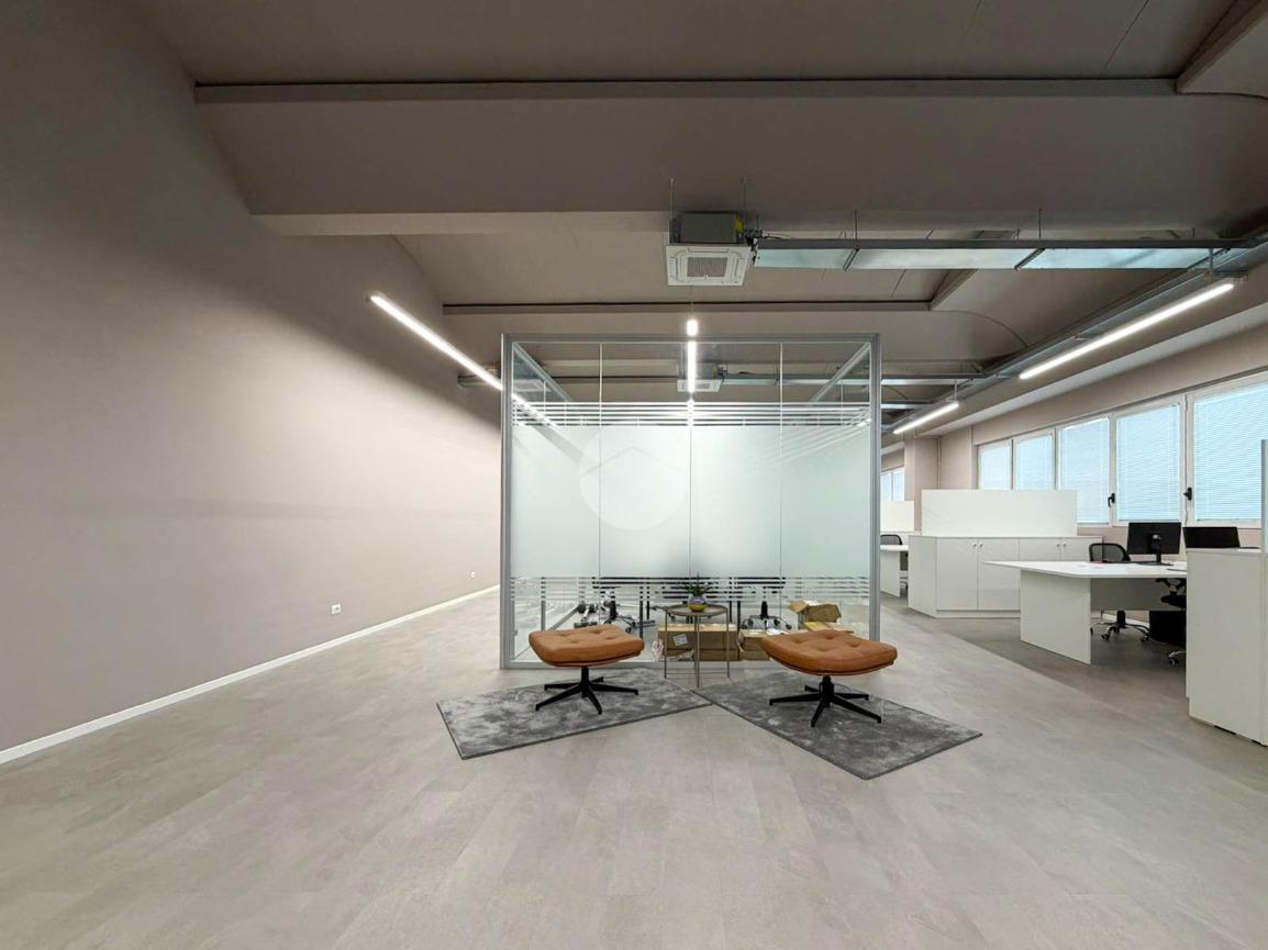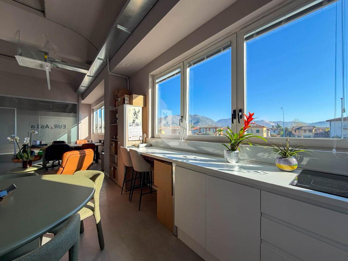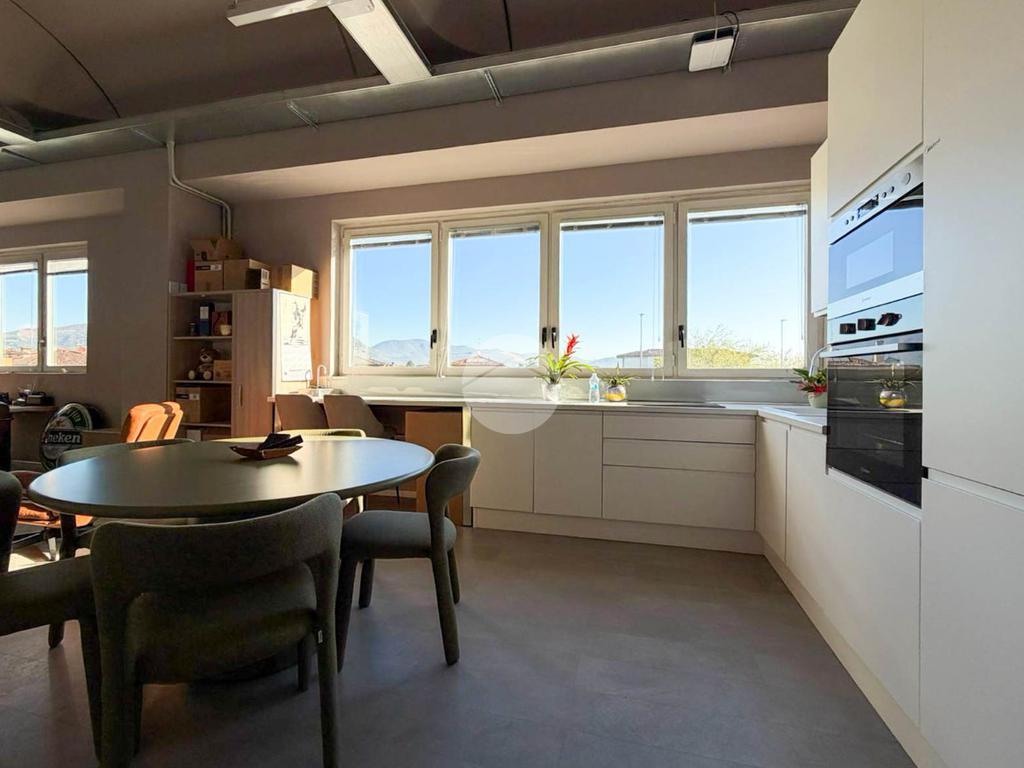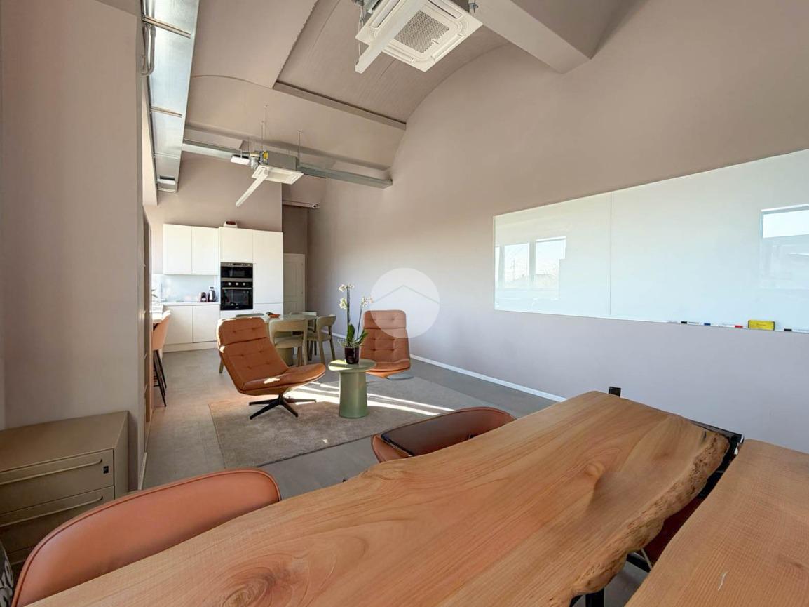 A completare la soluzione è presente un ulteriore ufficio open space di 60mq con angolo cottura e servizio igienico, oltre a numerose finestre che conferiscono elevata luminosità all’ambiente.