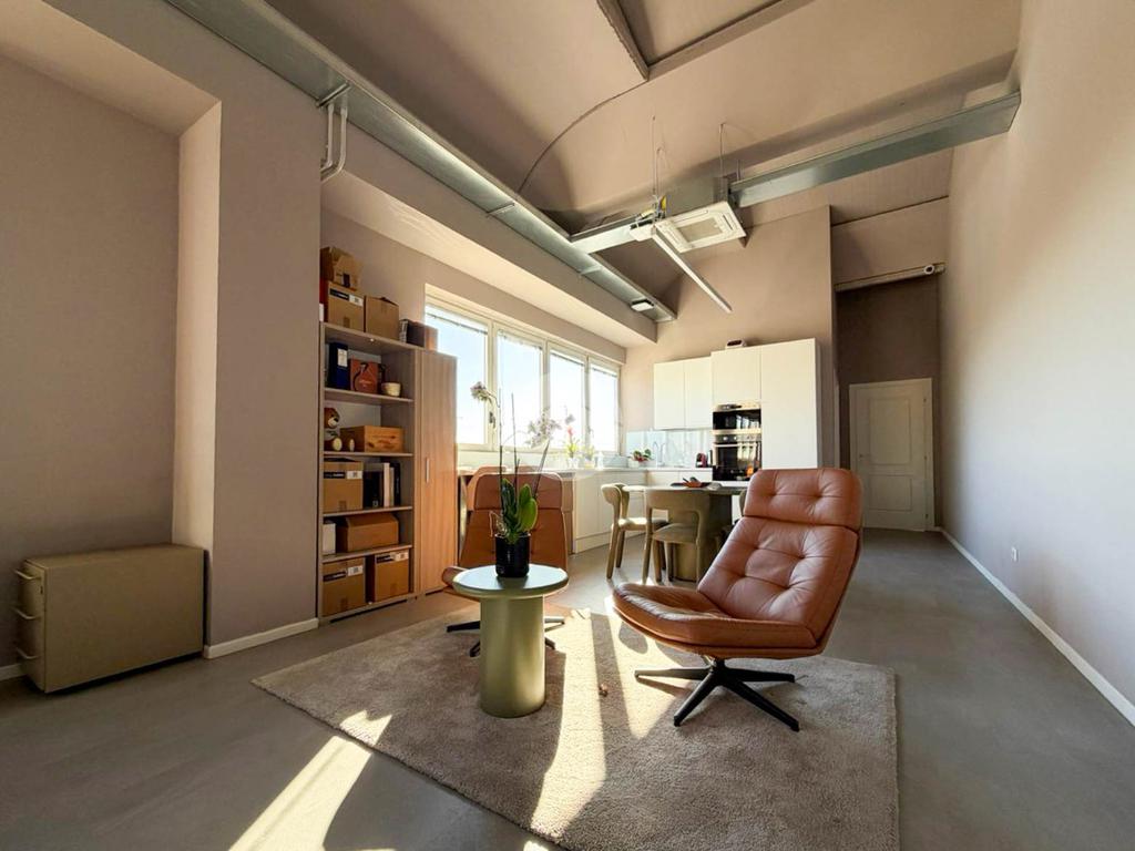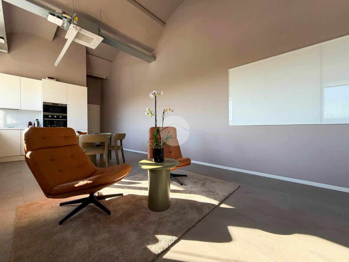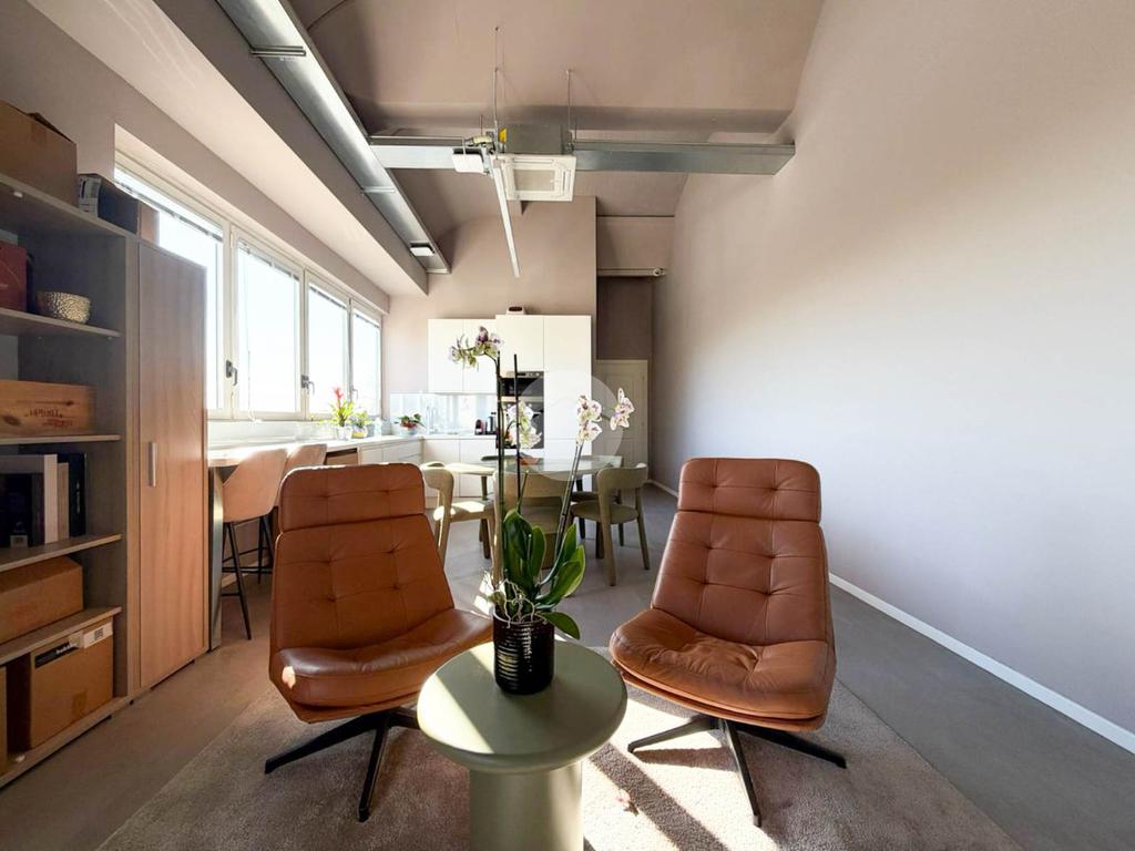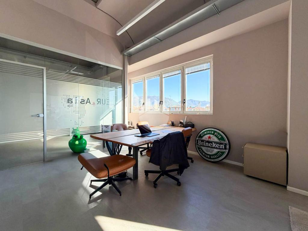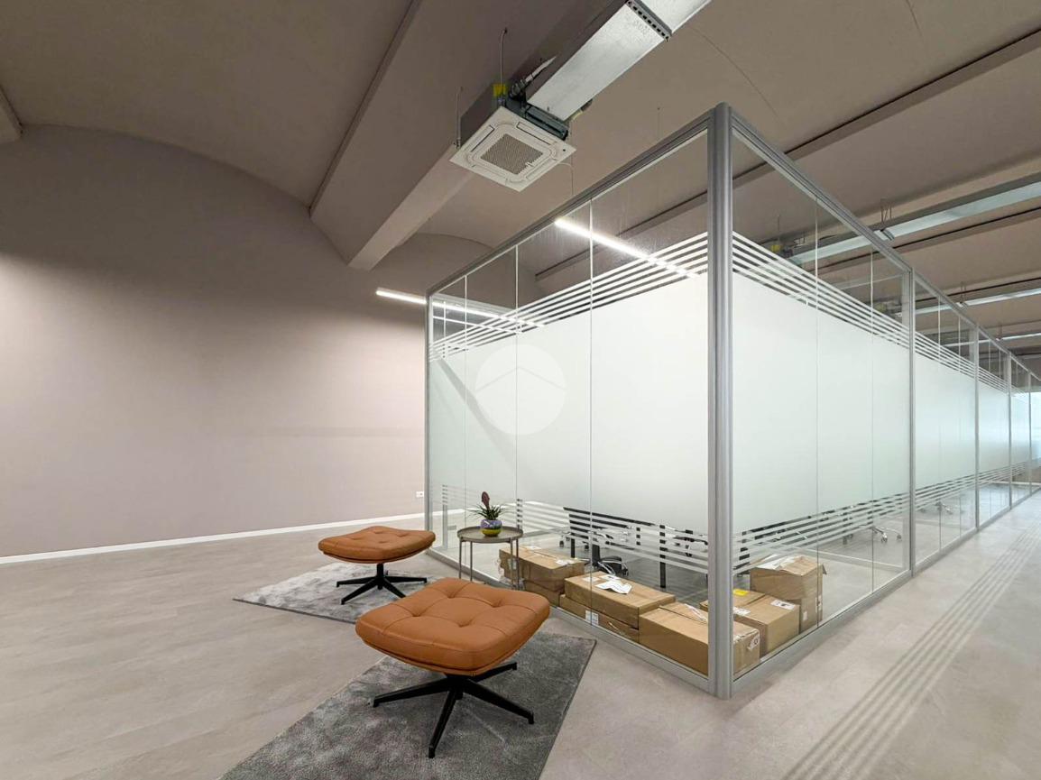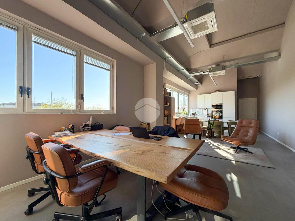 A completare la soluzione è presente un ulteriore ufficio open space di 60mq con angolo cottura e servizio igienico, oltre a numerose finestre che conferiscono elevata luminosità all’ambiente.