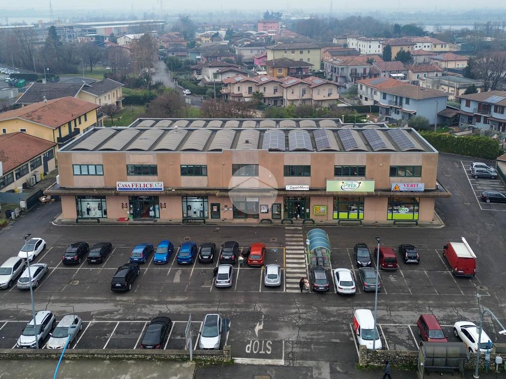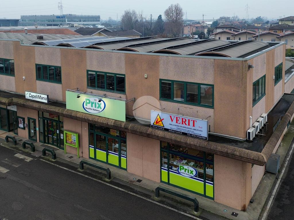 Proponiamo in locazione un ufficio di circa 300 mq, situato al primo piano di un complesso a destinazione commerciale ed affacciato su strada di forte passaggio al confine dei comuni di Brescia e Castenedolo.