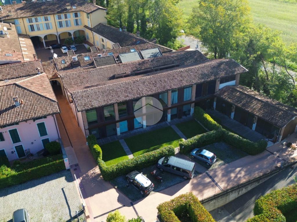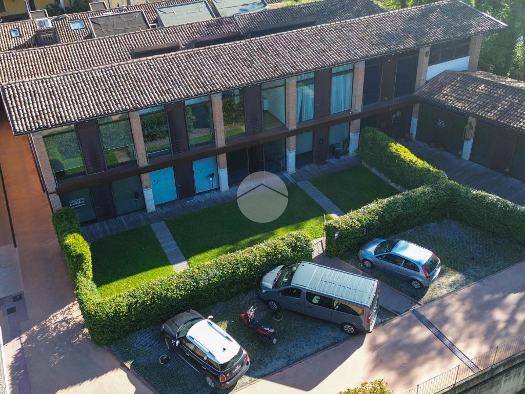 Completa la soluzione un giardino condominiale antistante e n. 2 posti auto esclusivi di cui uno esterno posto di fronte all’immobile e uno interno di circa 10 mq collegato direttamente all’immobile.