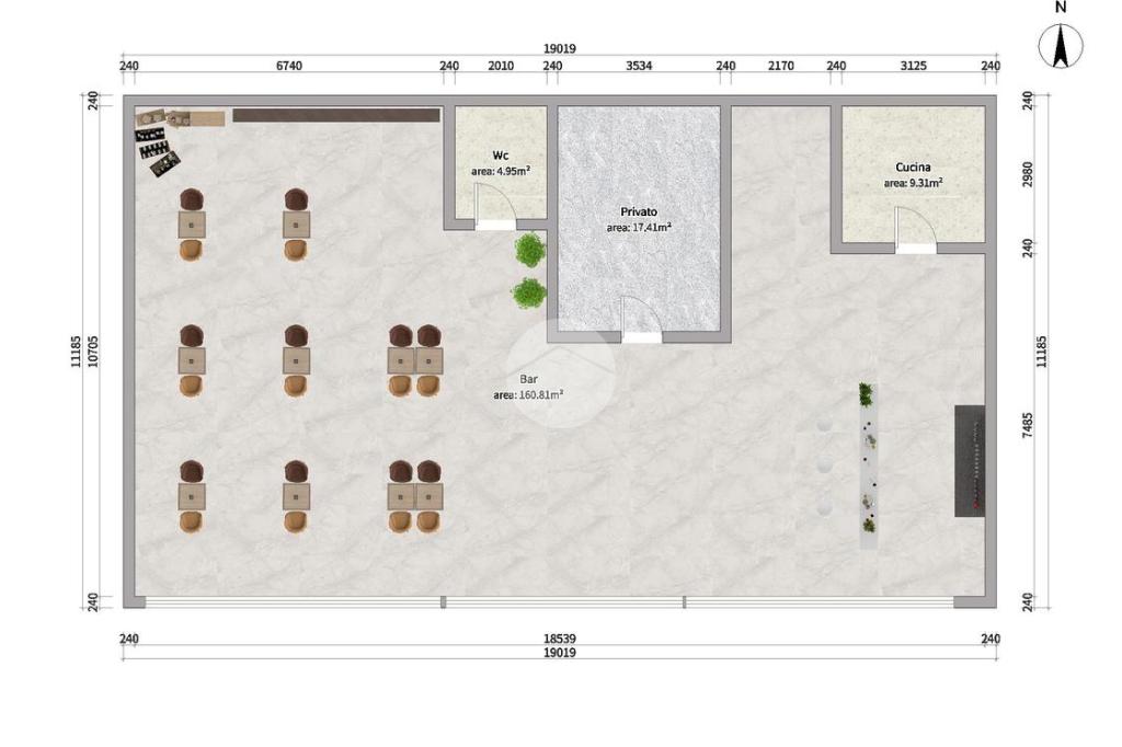 -Superficie: l’attività si insedia all’interno di un locale commerciale di 200mq con plateatico esterno sotto il porticato che caratterizza la realtà in cui è insediato l’immobile.