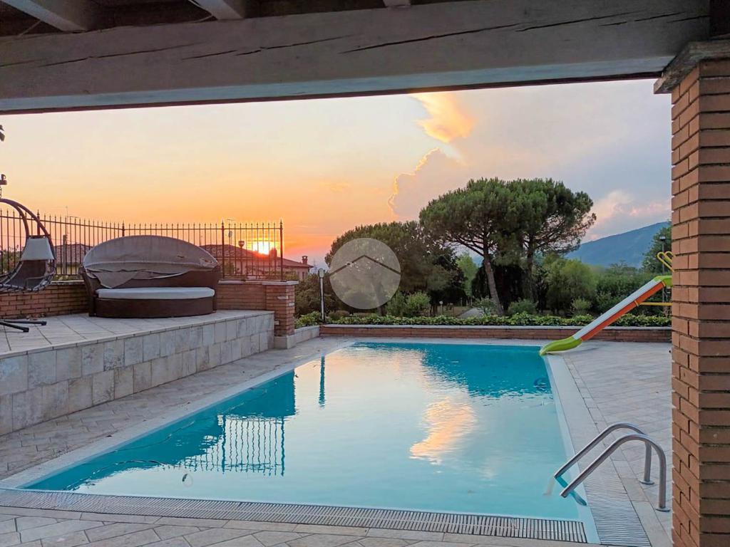 A completare la soluzione è presente un’ampia area esterna esclusiva di 4.400mq con piscina e ampio giardino, spazio esterno con parcheggio a disposizione della clientela e n. 2 box auto di circa 25mq ciascuno.