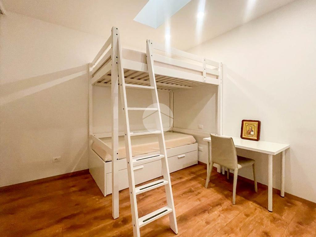 Il primo piano, di uguale metratura, è caratterizzato da un’abitazione di circa 90 mq a cui si accede tramite scala esterna ed è così suddivisa: zona cucina e soggiorno, ripostiglio, servizio igienico e n. 2 camere da letto.